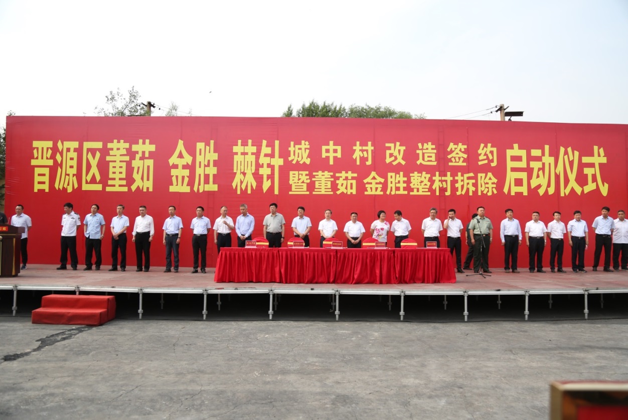 夏日如花,水光瀲滟。5月21日,晉源區(qū)城中村改造“百日攻堅(jiān)”誓師大會(huì)在位于晉陽湖湖畔的董茹村舉行,董茹村、金勝村、棘針村三村城中村改造簽約儀式在現(xiàn)場群眾的期待和注視下舉行,同時(shí)也標(biāo)志著我公司晉陽湖項(xiàng)目正式全面啟動(dòng)。在誓師大會(huì)上,總經(jīng)理蘭衛(wèi)軍同志代表太原國有投資集團(tuán)有限公司與晉源區(qū)人民政府、晉源區(qū)經(jīng)投公司、金勝鎮(zhèn)、羅城街辦、董茹、金勝、棘針三村村委會(huì)負(fù)責(zé)人簽署了城中村改造合作協(xié)議。晉源區(qū)四大班子領(lǐng)導(dǎo),市住建委、市城改辦領(lǐng)導(dǎo)出席并見證簽約儀式;區(qū)委、區(qū)政府所屬18個(gè)部門;3個(gè)鎮(zhèn)(街)干部及駐村人員;太原國有投資集團(tuán)有限公司、晉陽湖管理中心、區(qū)經(jīng)投公司、區(qū)城改辦、公安巡防大隊(duì)、民兵應(yīng)急隊(duì)共計(jì)500余人參會(huì)。