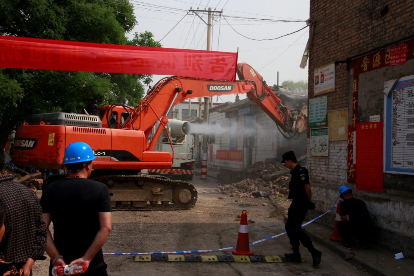 圖為:動(dòng)員會(huì)后,董茹村、金勝村同時(shí)實(shí)施村民宅院的拆除作業(yè)。整村拆除預(yù)計(jì)9月初完成。