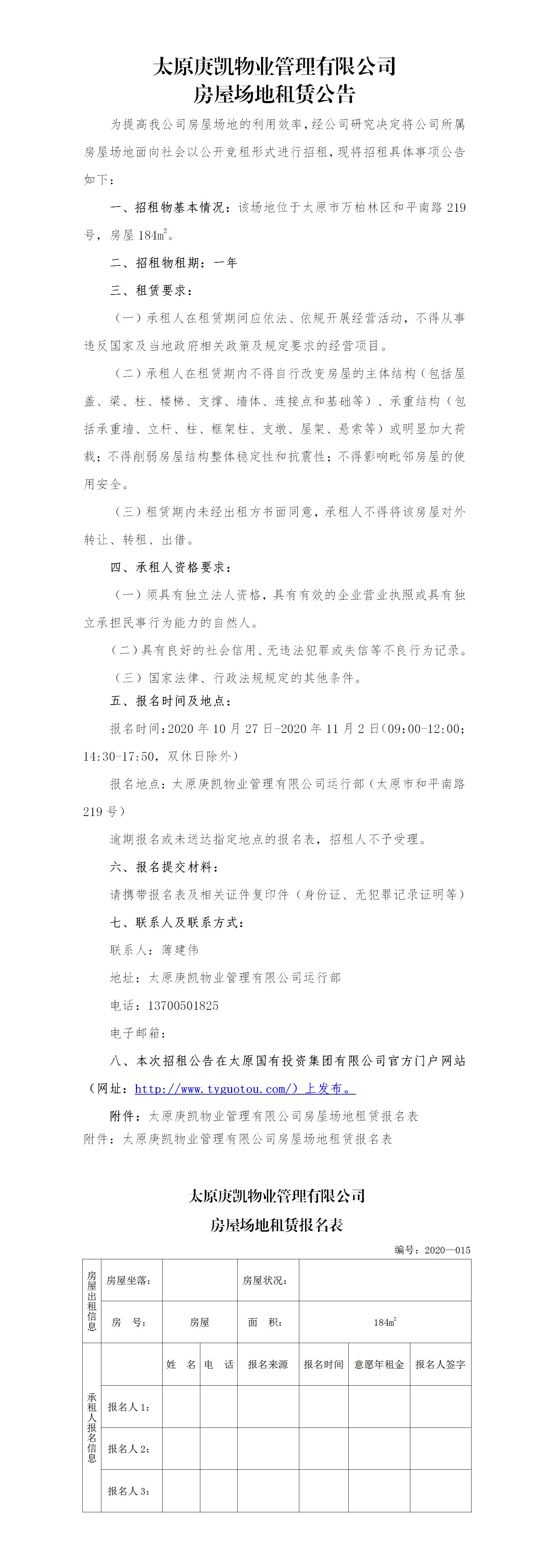 太原庚凱物業(yè)管理有限公司房屋場(chǎng)地租賃公告(十五)