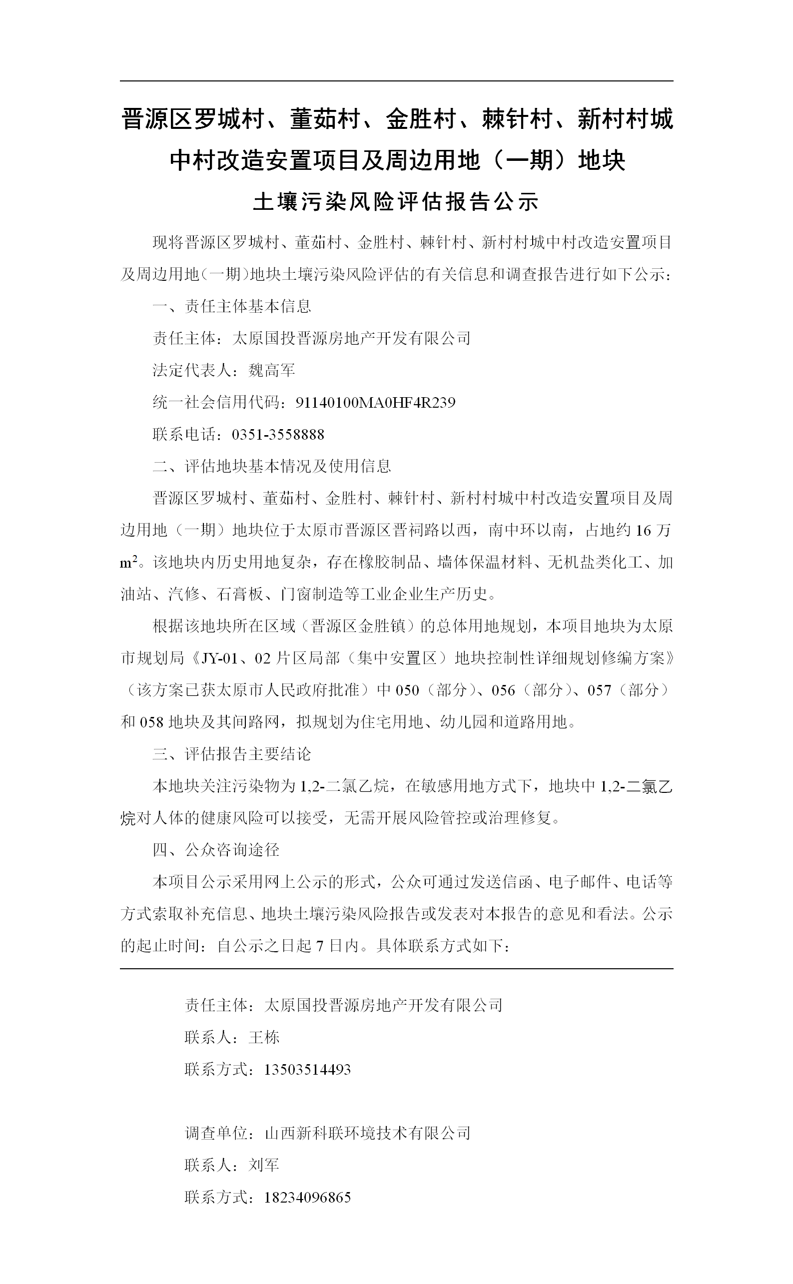 董茹等村城中村改造安置項目及周邊用地(一期)地塊土壤污染風(fēng)險評估報告公示