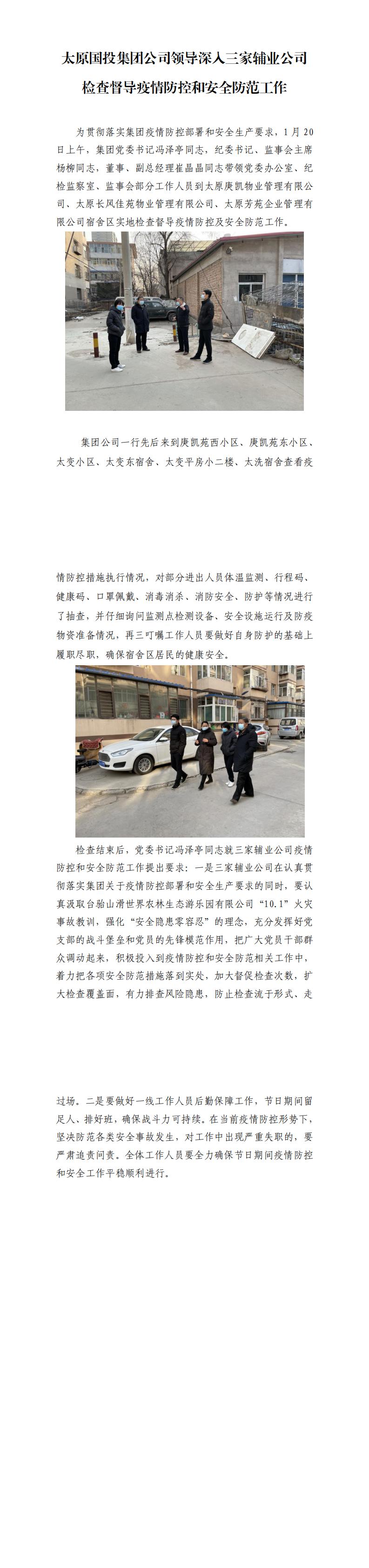 太原國投集團公司領導深入三家輔業(yè)公司檢查督導疫情防控和安全防范工作
