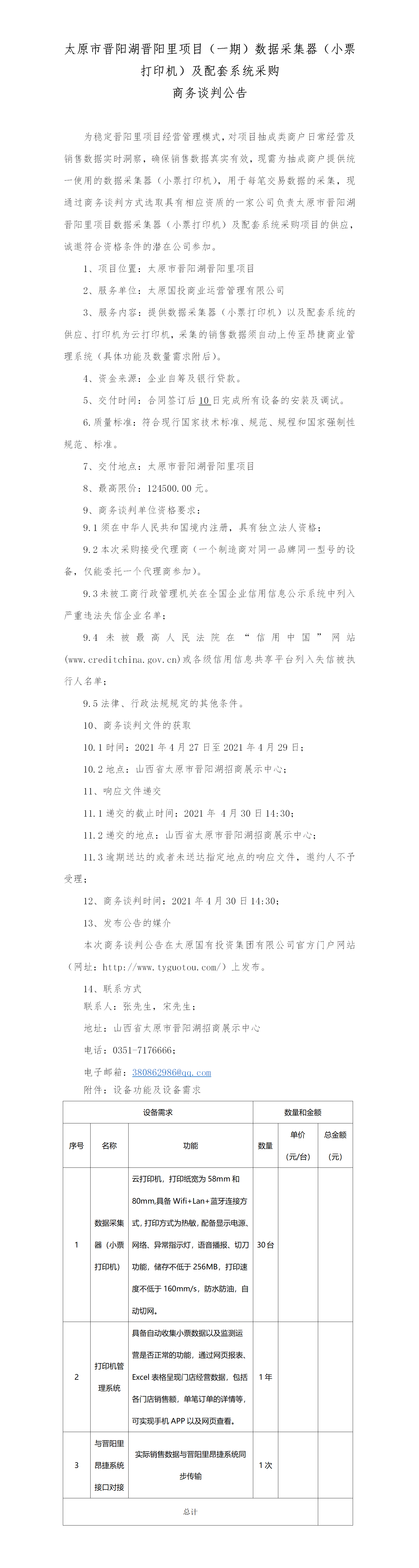 太原市晉陽(yáng)湖晉陽(yáng)里項(xiàng)目(一期)數(shù)據(jù)采集器(小票打印機(jī))及配套系統(tǒng)采購(gòu)項(xiàng)目