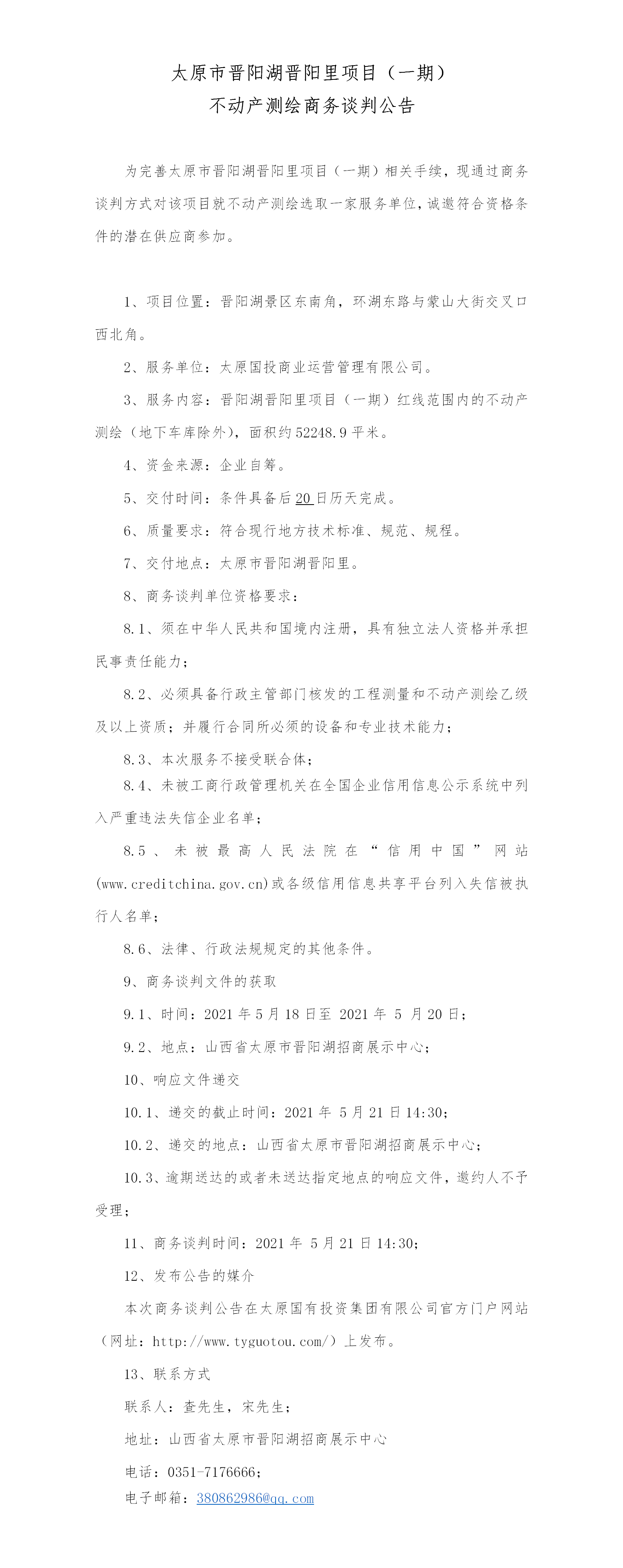 太原市晉陽湖晉陽里項目(一期)不動產(chǎn)測繪商務談判公告
