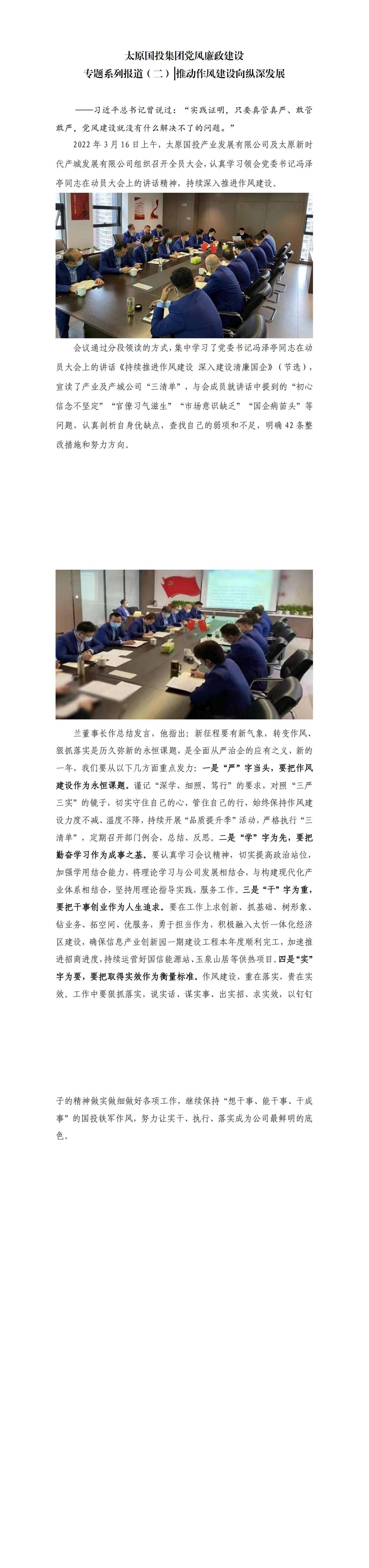 太原國投集團(tuán)黨風(fēng)廉政建設(shè)專題系列報(bào)道(二)推動作風(fēng)建設(shè)向縱深發(fā)展