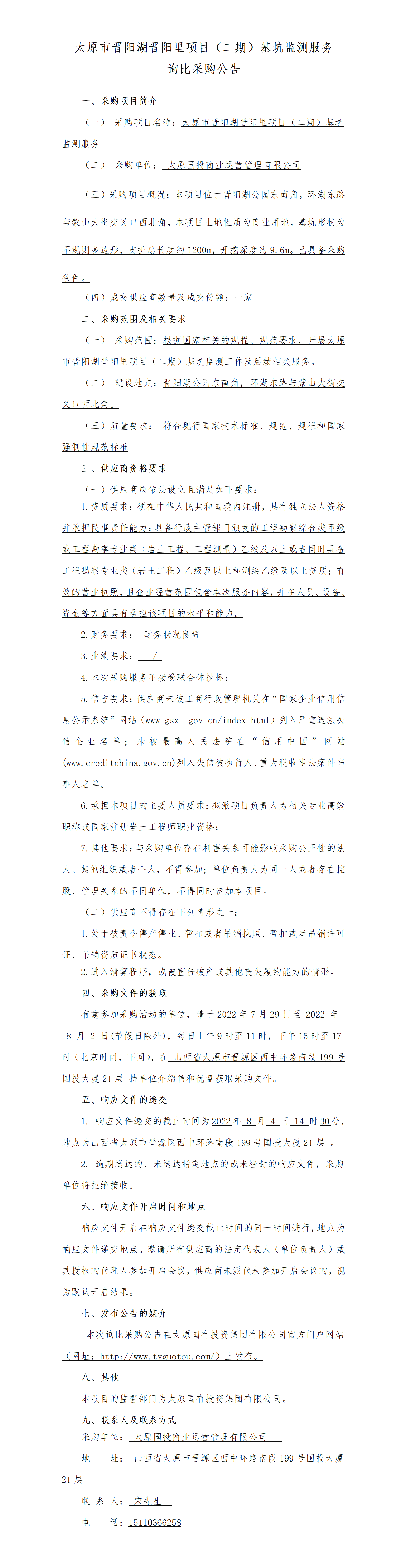 太原市晉陽湖晉陽里項目(二期)基坑監(jiān)測服務詢比采購公告
