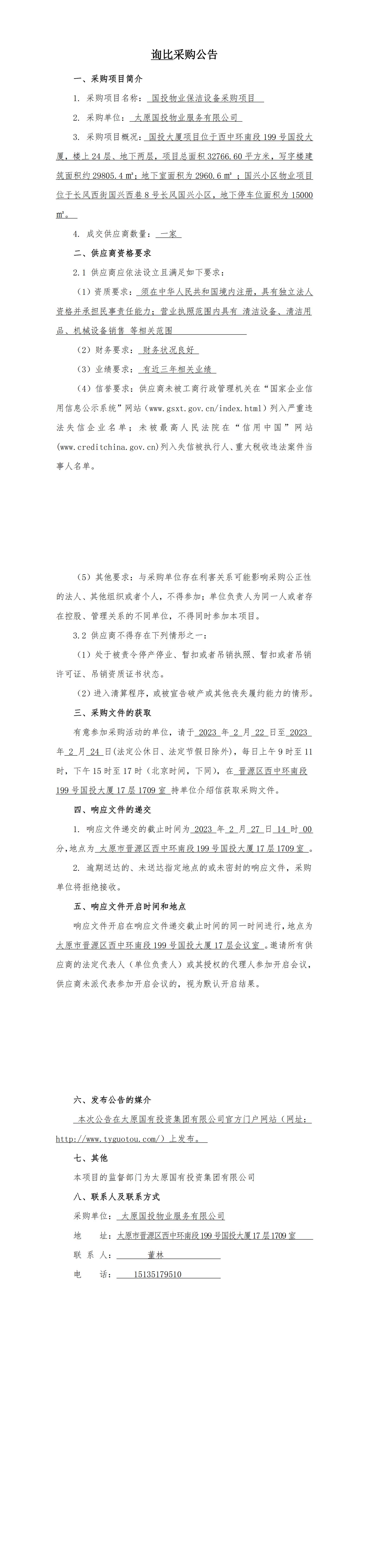 太原國(guó)投物業(yè)保潔設(shè)備采購(gòu)項(xiàng)目詢比采購(gòu)公告