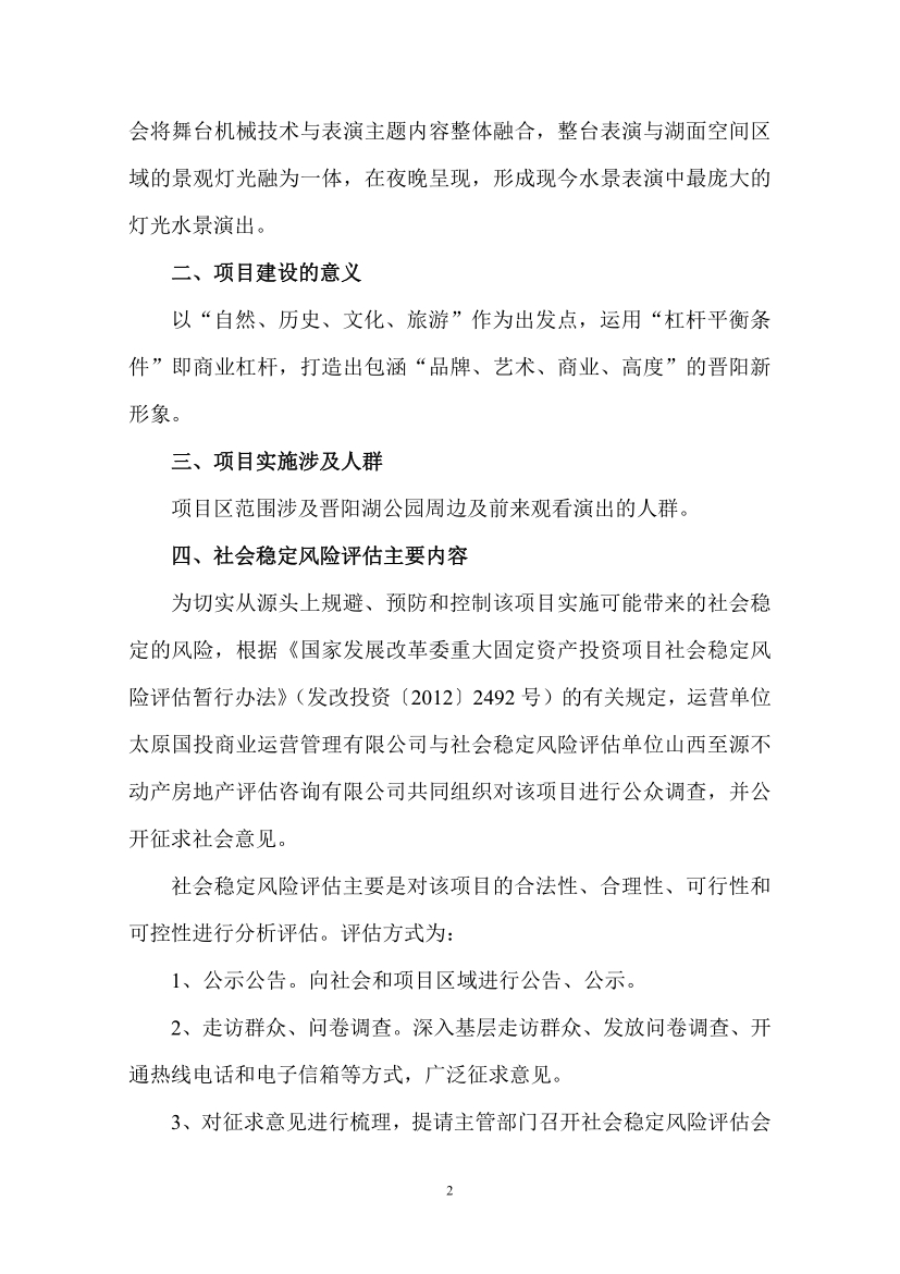 太原市晉陽湖公園水上文旅創(chuàng)意項目社會穩(wěn)定風(fēng)險評估公開征求社會意見公告