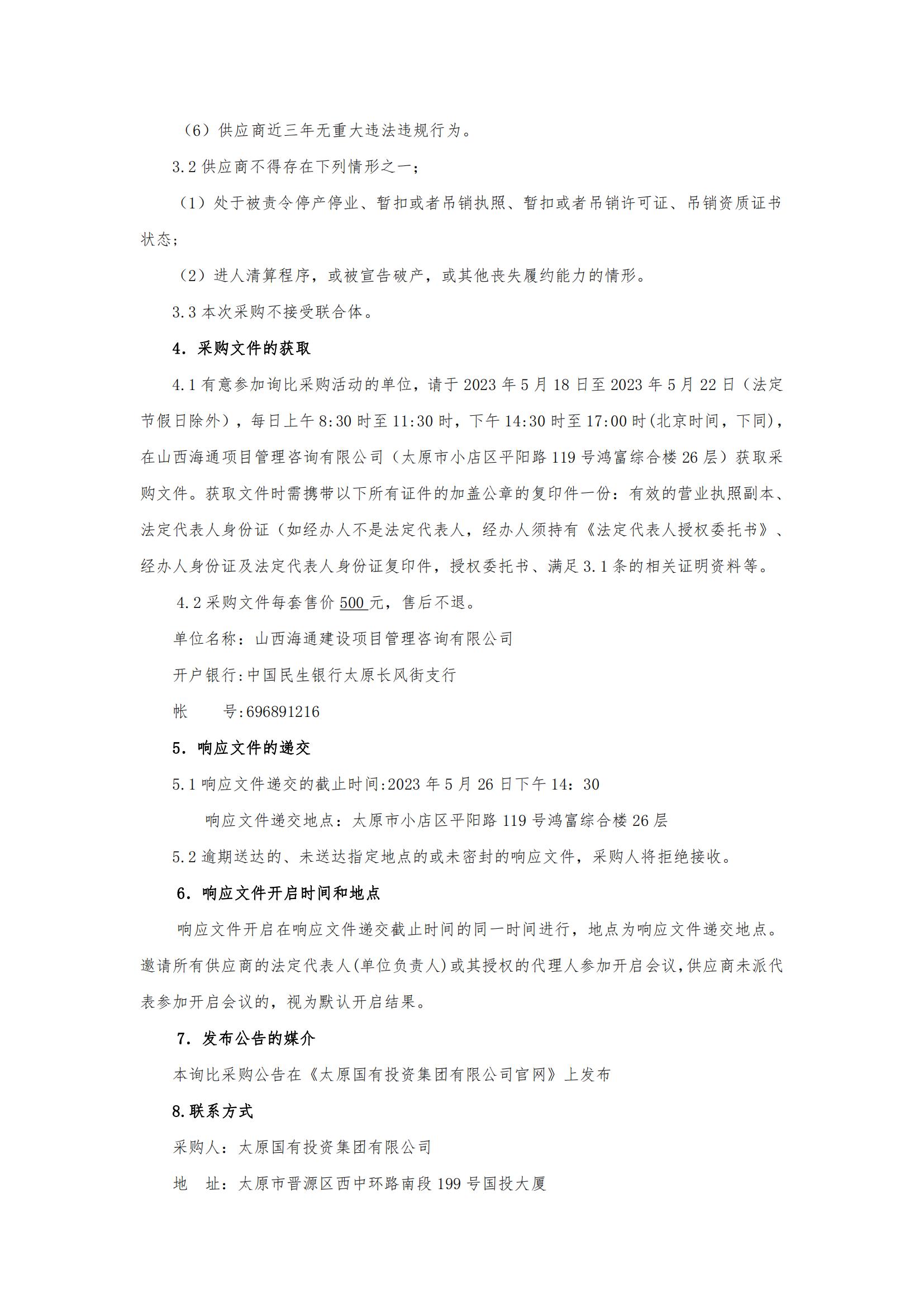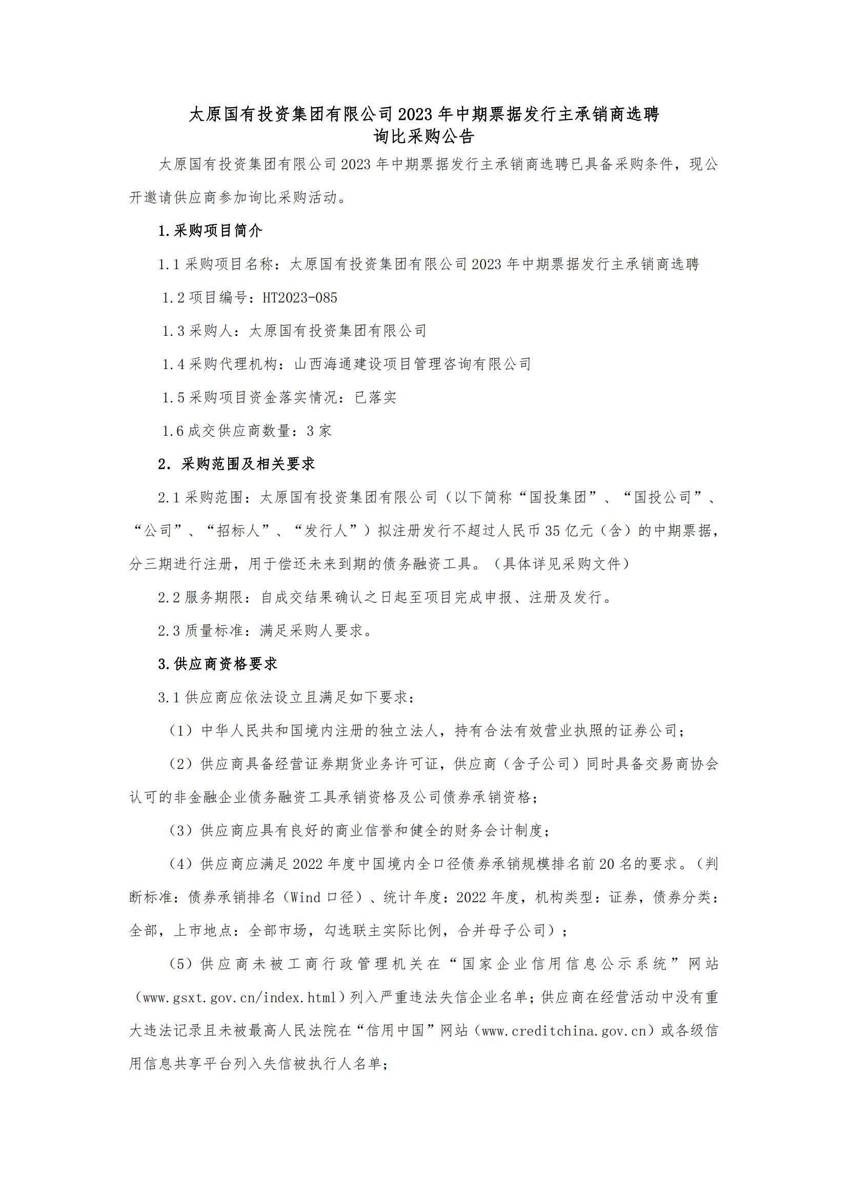 太原國有投資集團有限公司2023年中期票據發(fā)行主承銷商選聘詢比采購公告