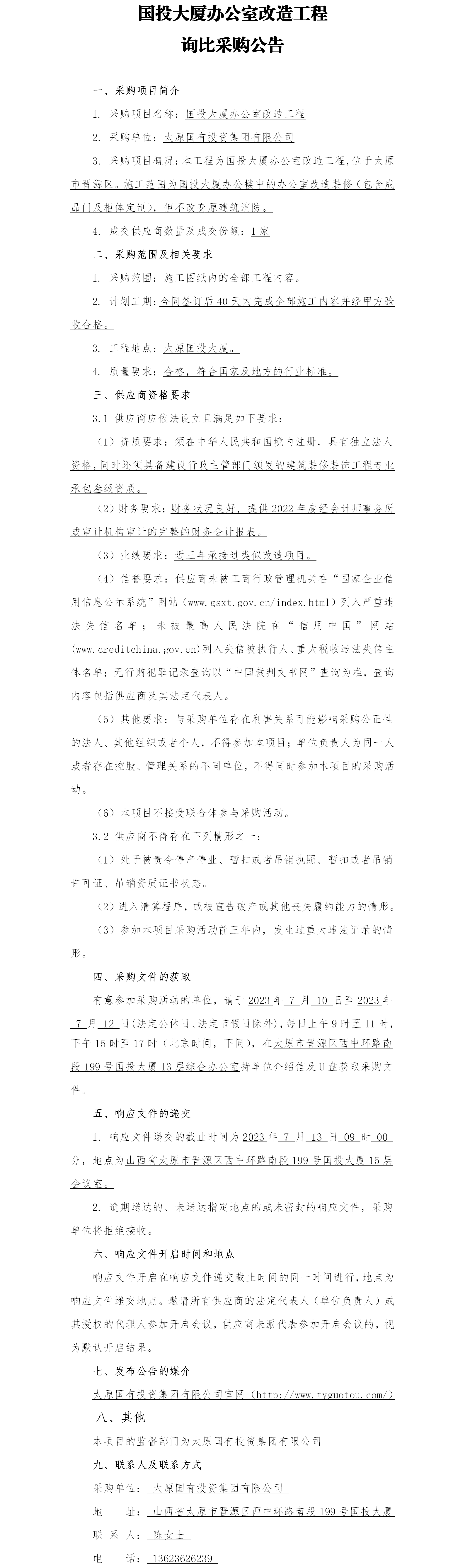 國(guó)投大廈辦公室改造工程詢比采購(gòu)公告