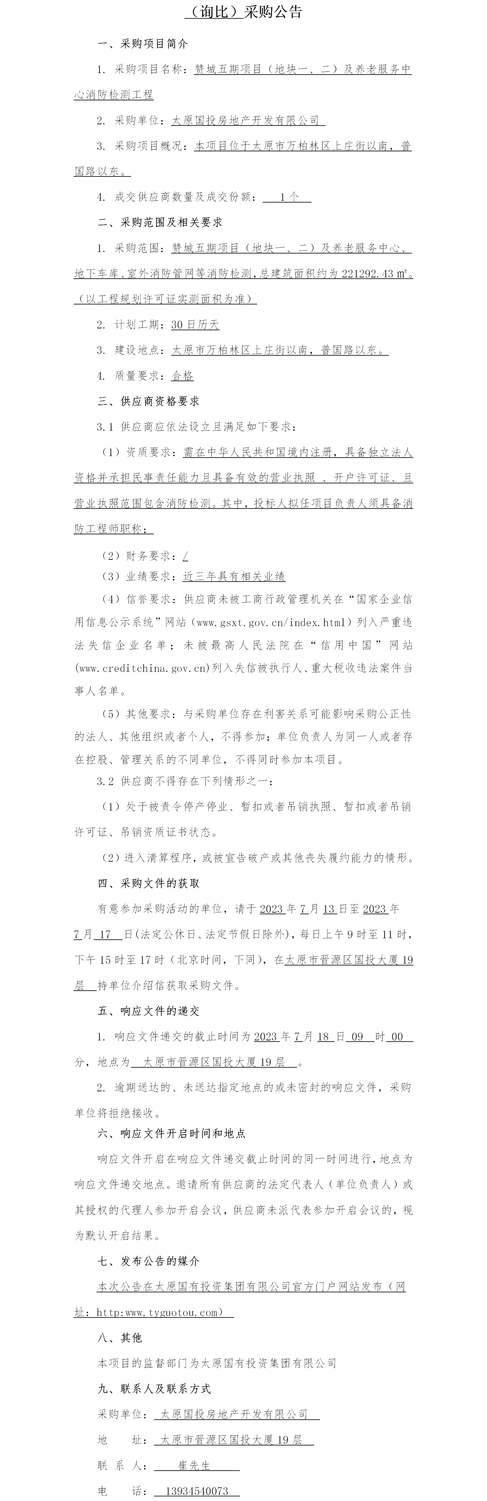 贊城五期項(xiàng)目(地塊一、二)及養(yǎng)老服務(wù)中心消防檢測工程(詢比)采購公告