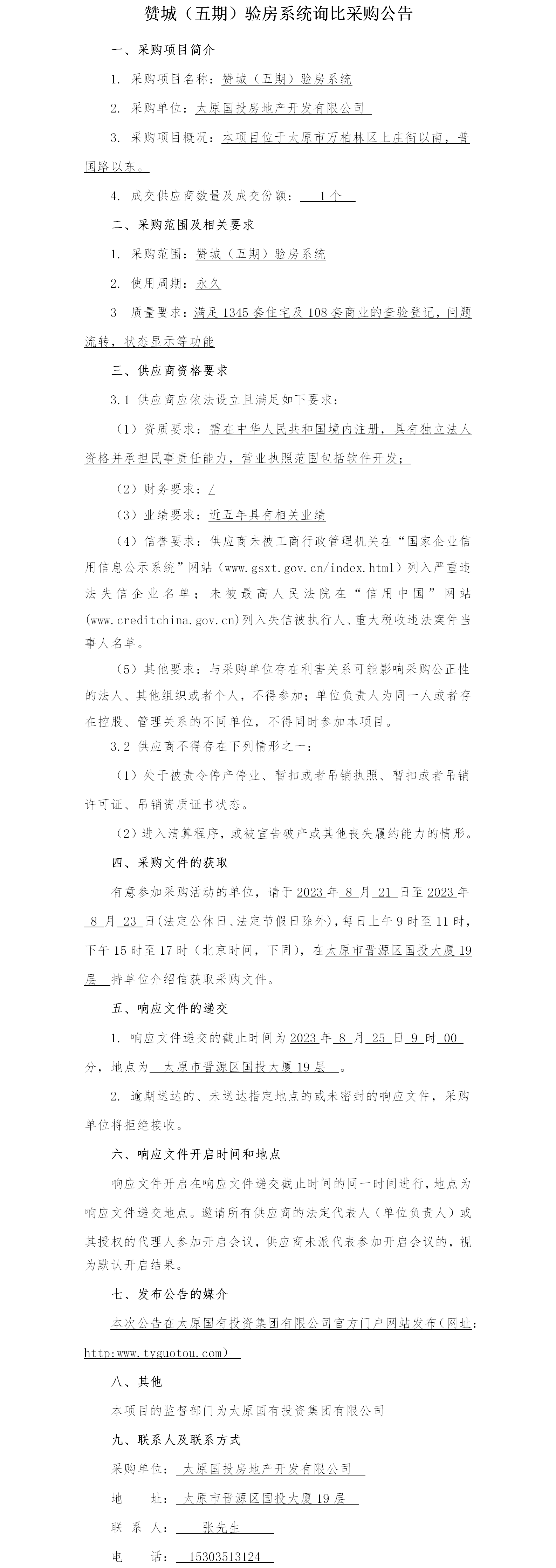 贊城(五期)驗(yàn)房系統(tǒng)詢比采購(gòu)公告