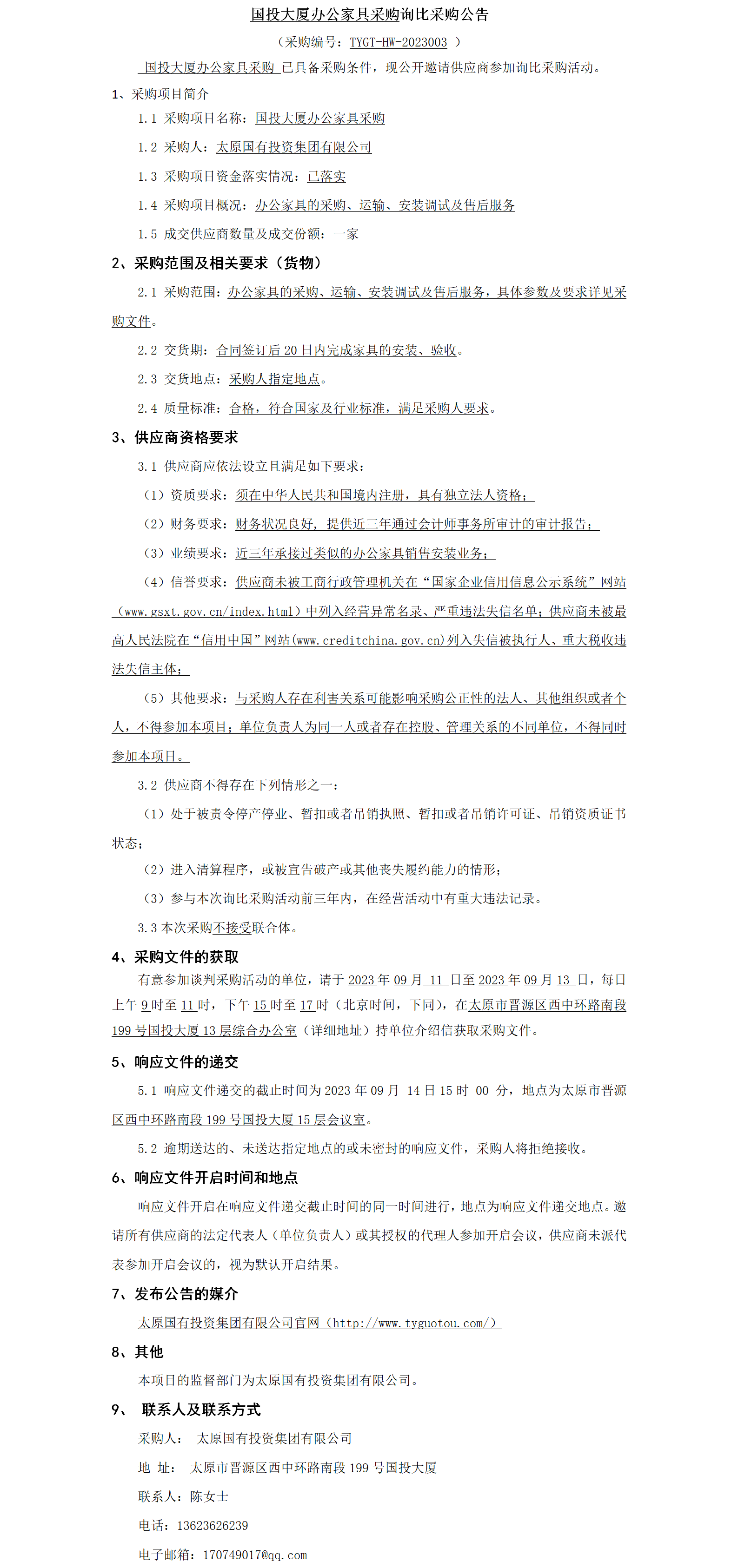 國(guó)投大廈辦公家具采購(gòu)詢(xún)比采購(gòu)公告