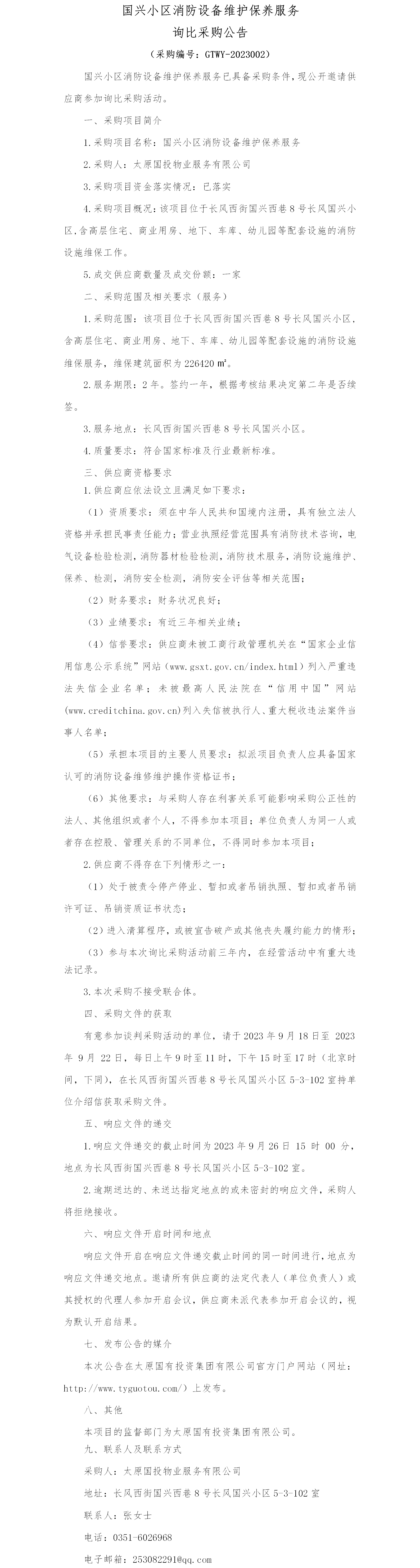 國興小區(qū)消防設(shè)備維護(hù)保養(yǎng)服務(wù)詢比采購公告