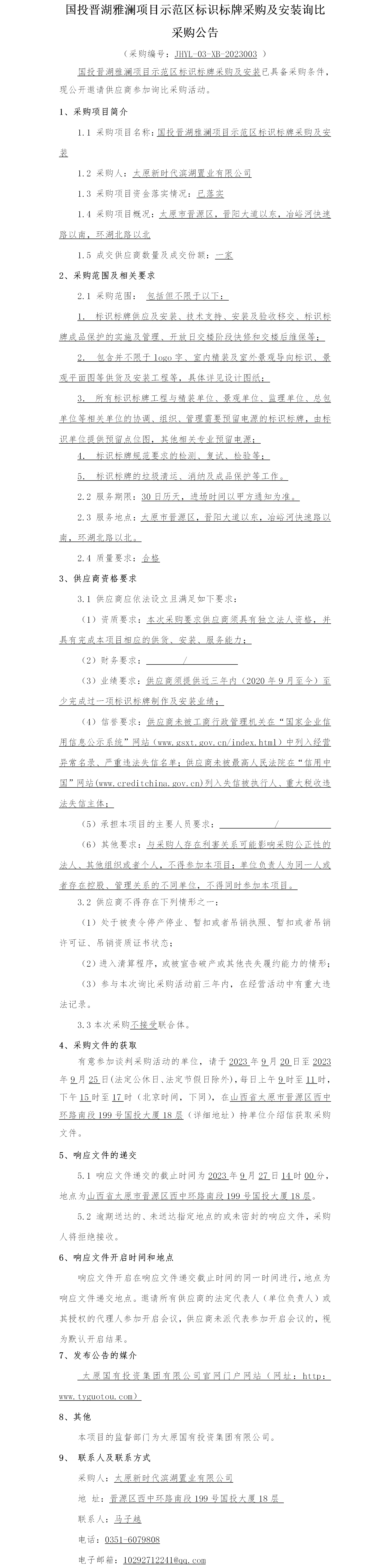 國投晉湖雅瀾項(xiàng)目示范區(qū)標(biāo)識標(biāo)牌采購及安裝詢比采購公告