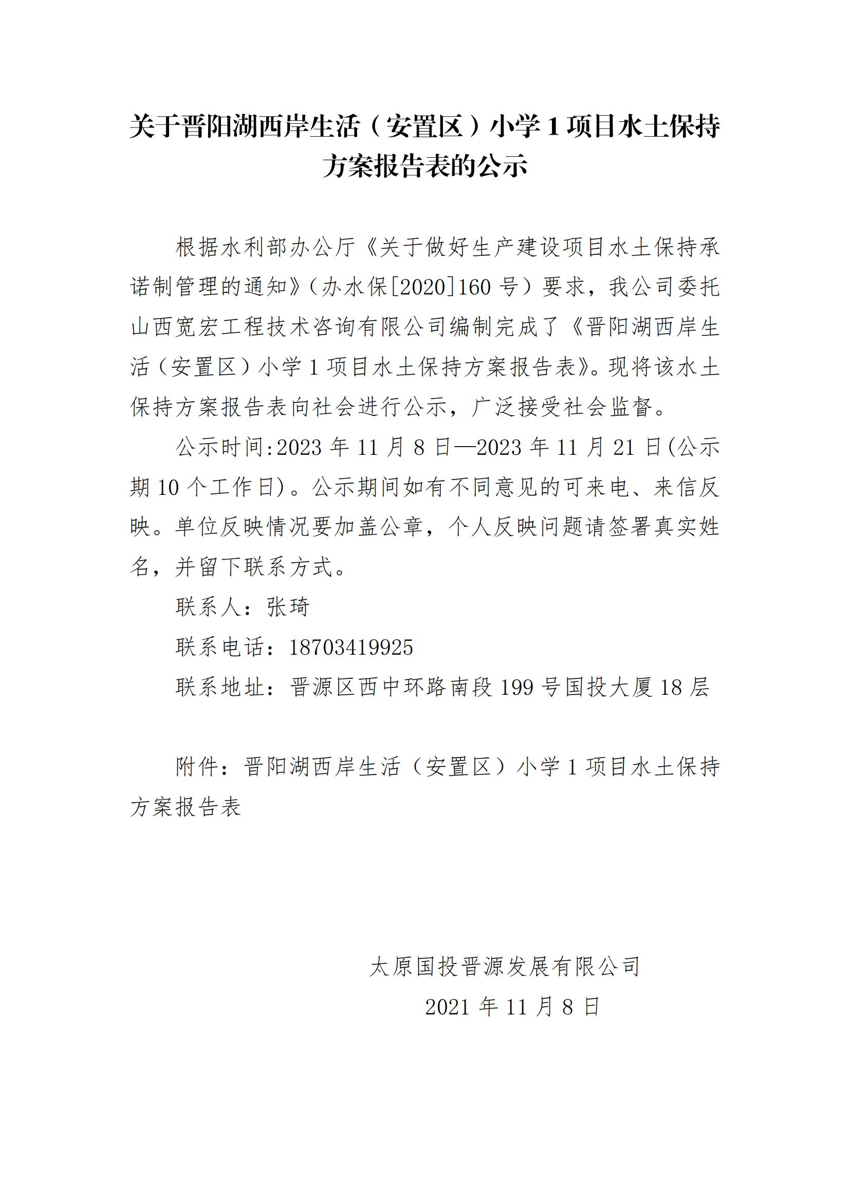 關(guān)于晉陽湖西岸生活(安置區(qū))小學(xué)1項目水土保持方案報告表的公示