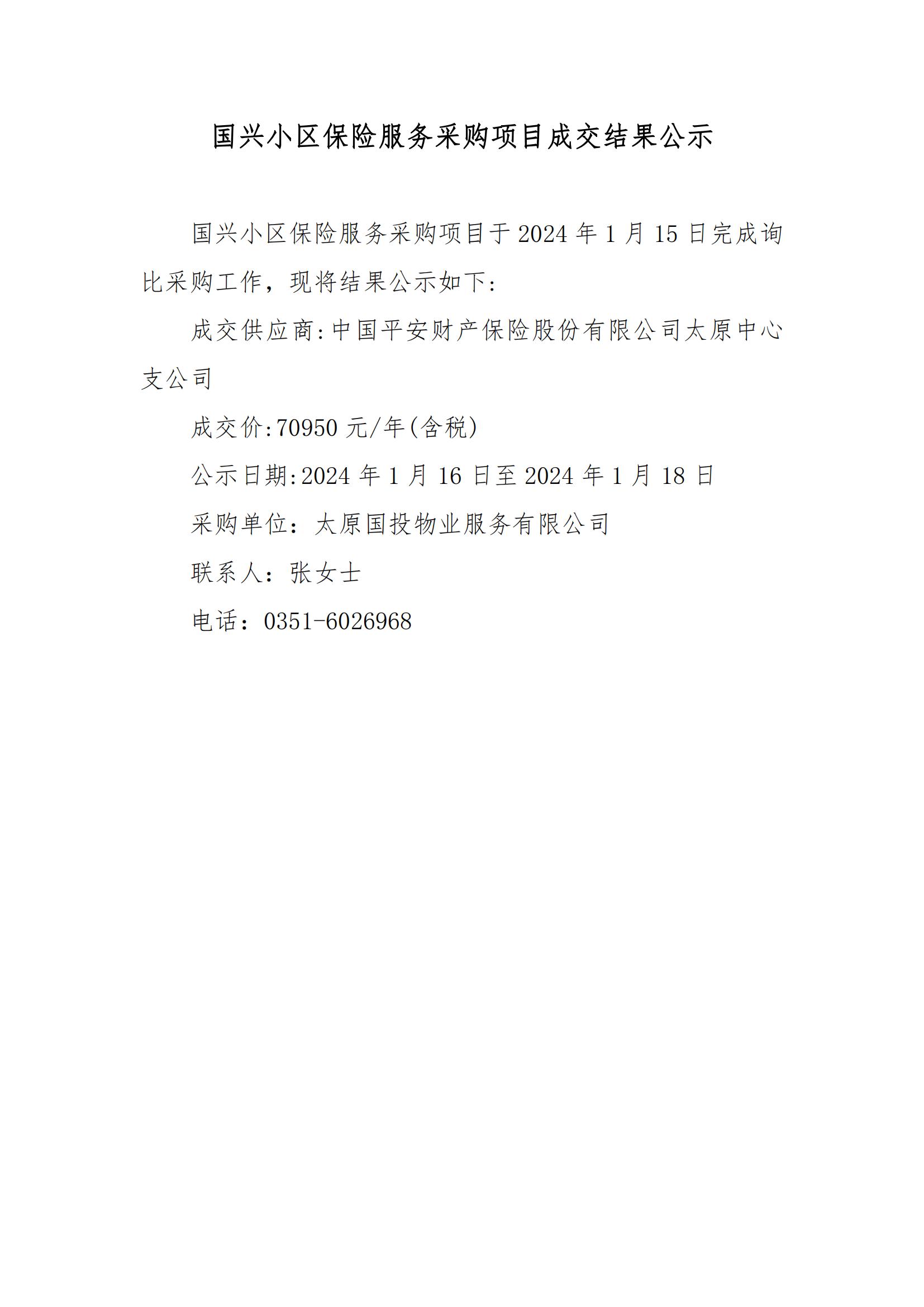 國興小區(qū)保險(xiǎn)服務(wù)采購項(xiàng)目成交結(jié)果公示