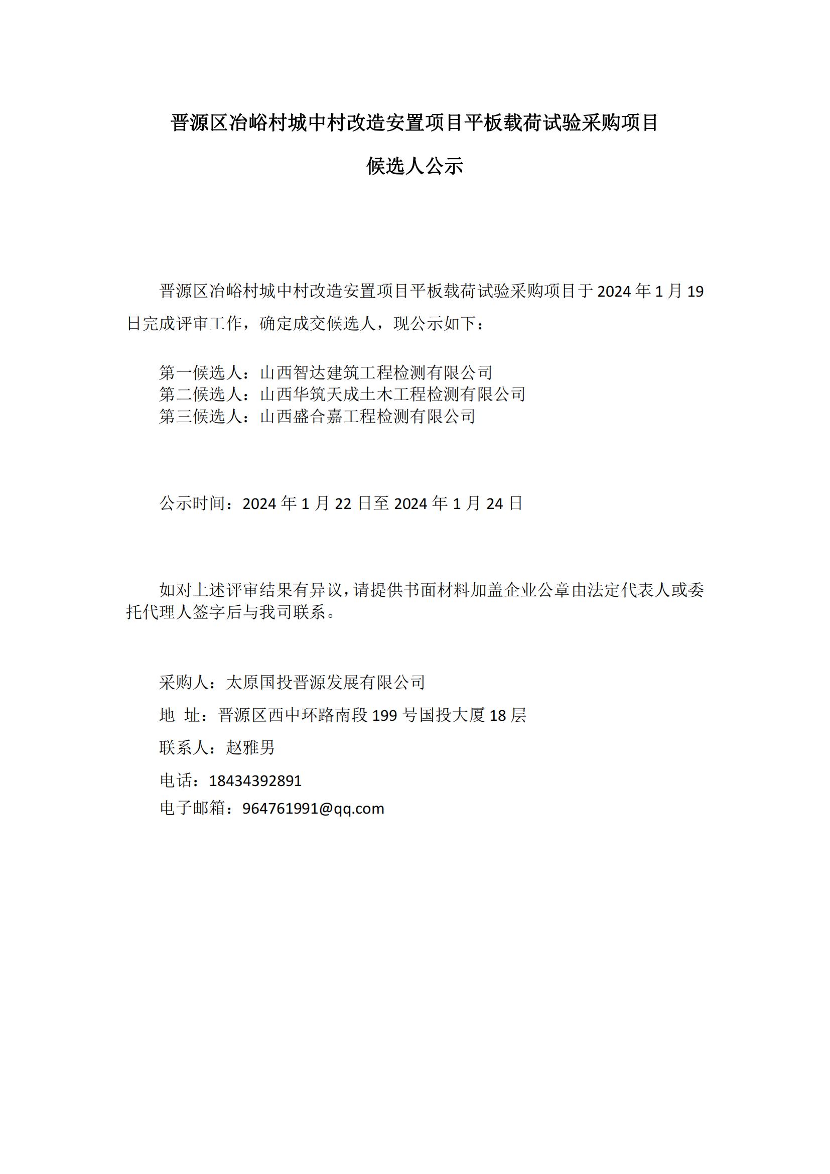 晉源區(qū)冶峪村城中村改造安置項(xiàng)目平板載荷試驗(yàn)候選人公示