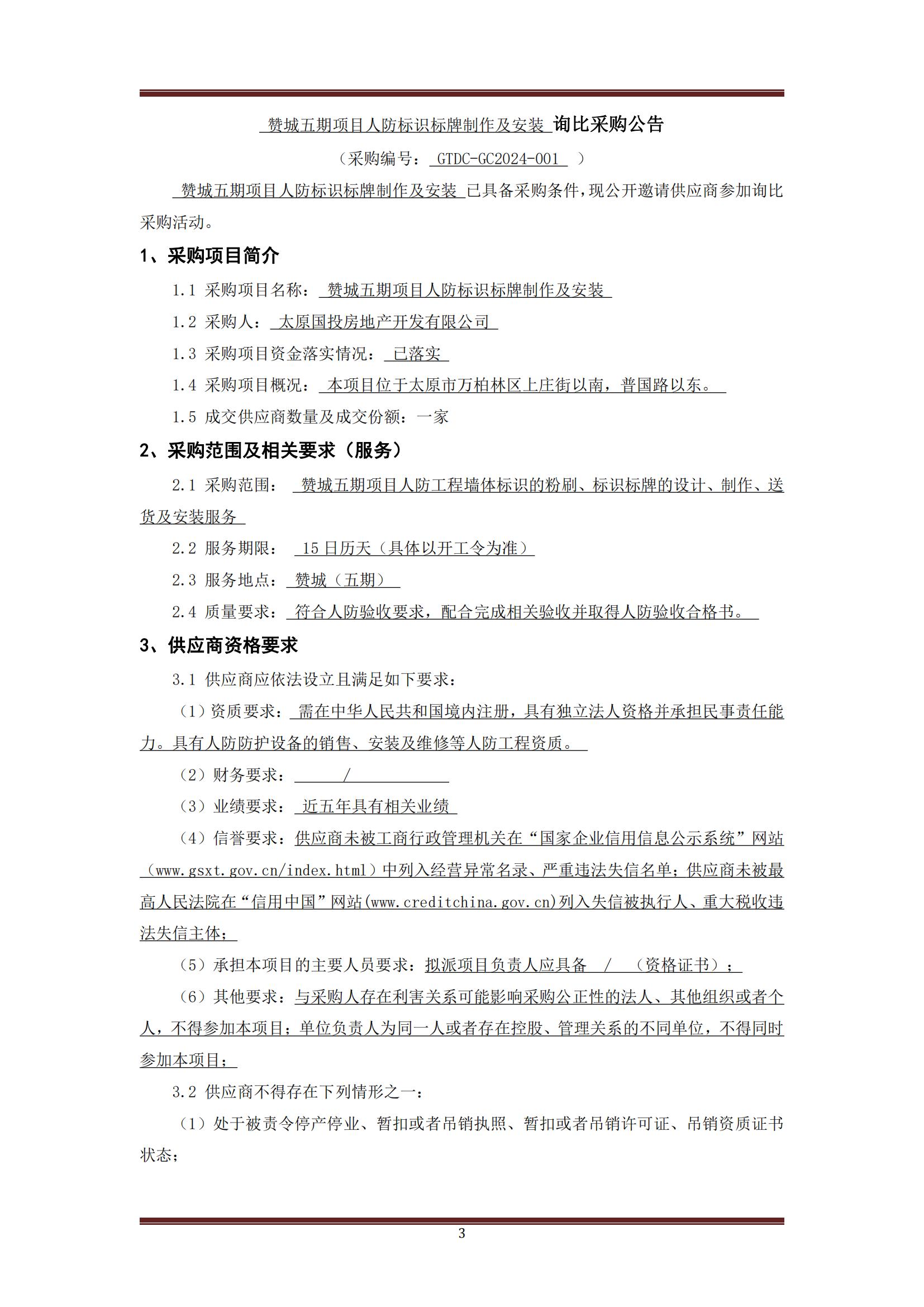 贊城五期項(xiàng)目人防標(biāo)識(shí)標(biāo)牌制作及安裝詢(xún)比采購(gòu)公告