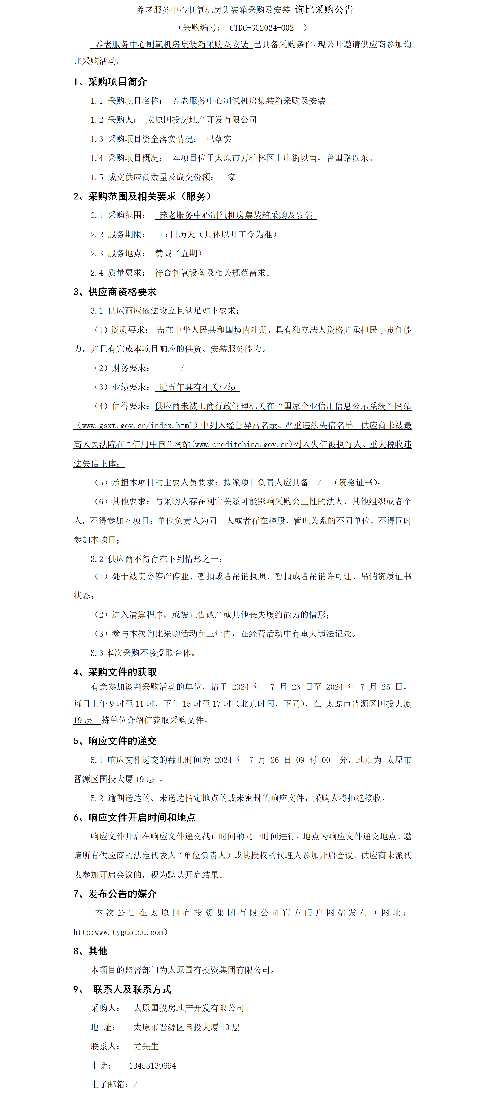養(yǎng)老服務(wù)中心制氧機(jī)房集裝箱采購(gòu)及安裝詢(xún)比采購(gòu)公告