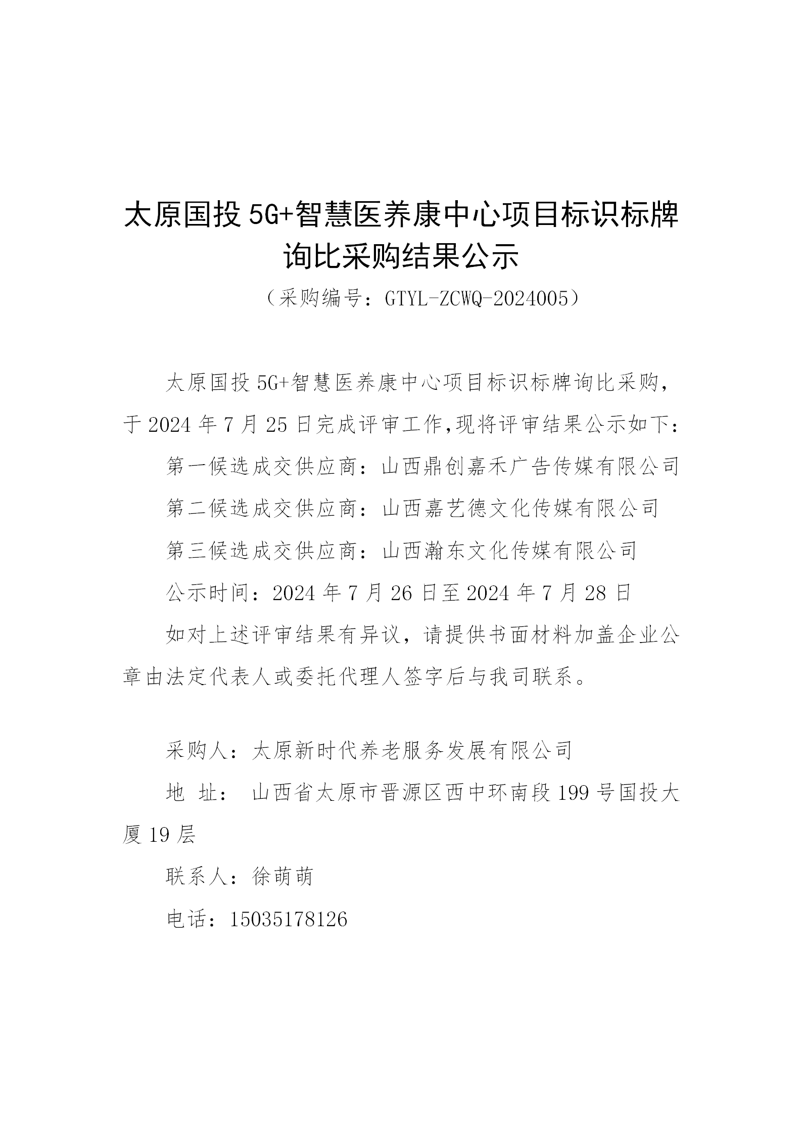 太原國(guó)投5G+智慧醫(yī)養(yǎng)康中心項(xiàng)目標(biāo)識(shí)標(biāo)牌詢比采購(gòu)結(jié)果公示
