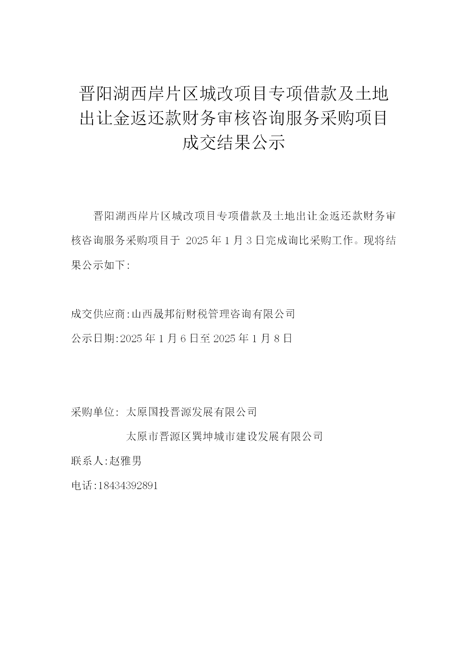 晉陽湖西岸片區(qū)城改項(xiàng)目專項(xiàng)借款及土地出讓金返還款財(cái)務(wù)審核咨詢服務(wù)采購項(xiàng)目結(jié)果公示