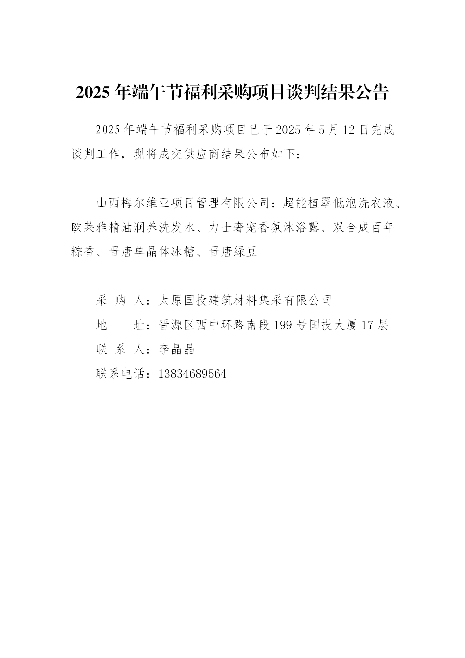 2025年端午節(jié)福利采購(gòu)項(xiàng)目談判結(jié)果公告