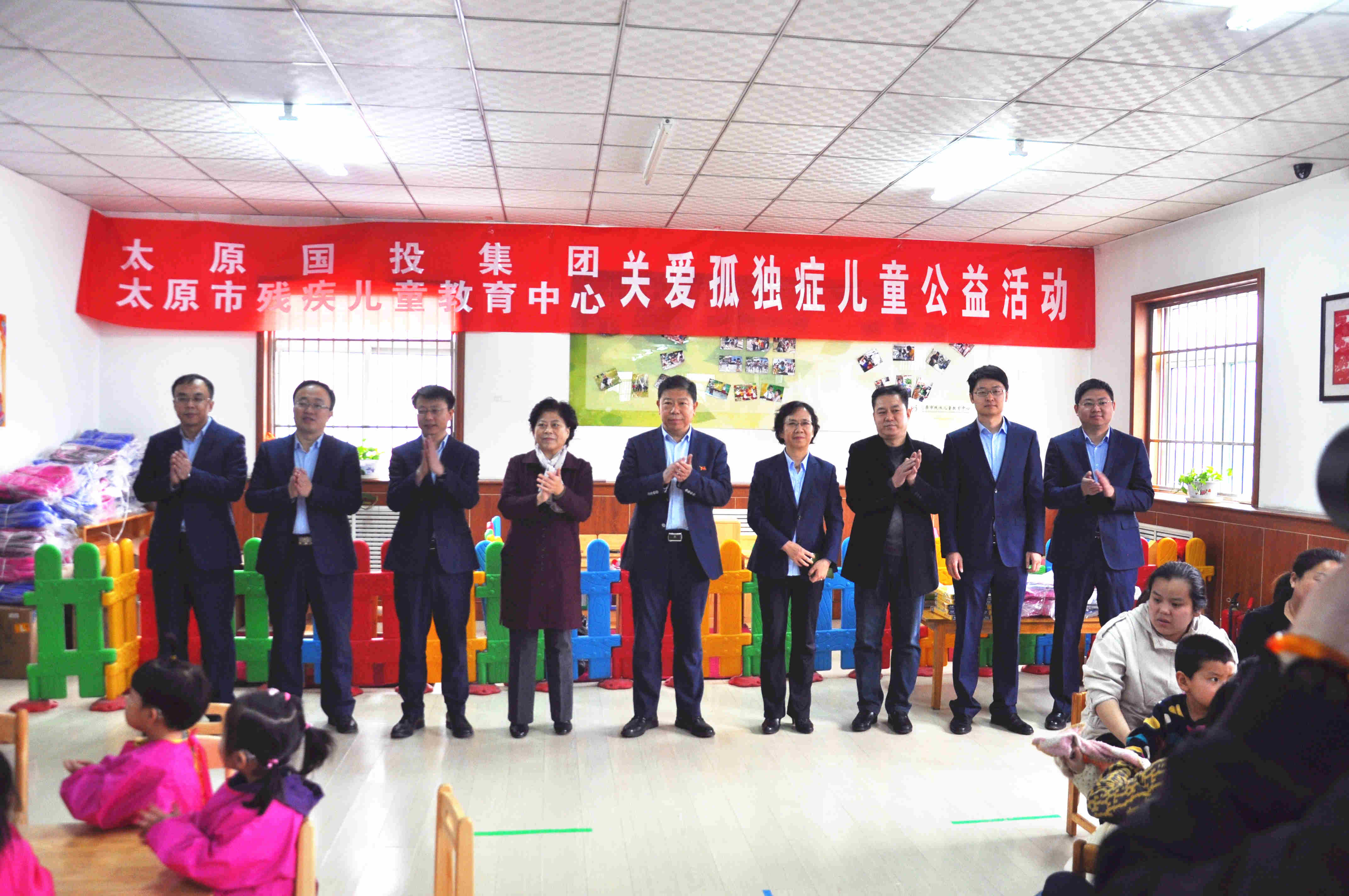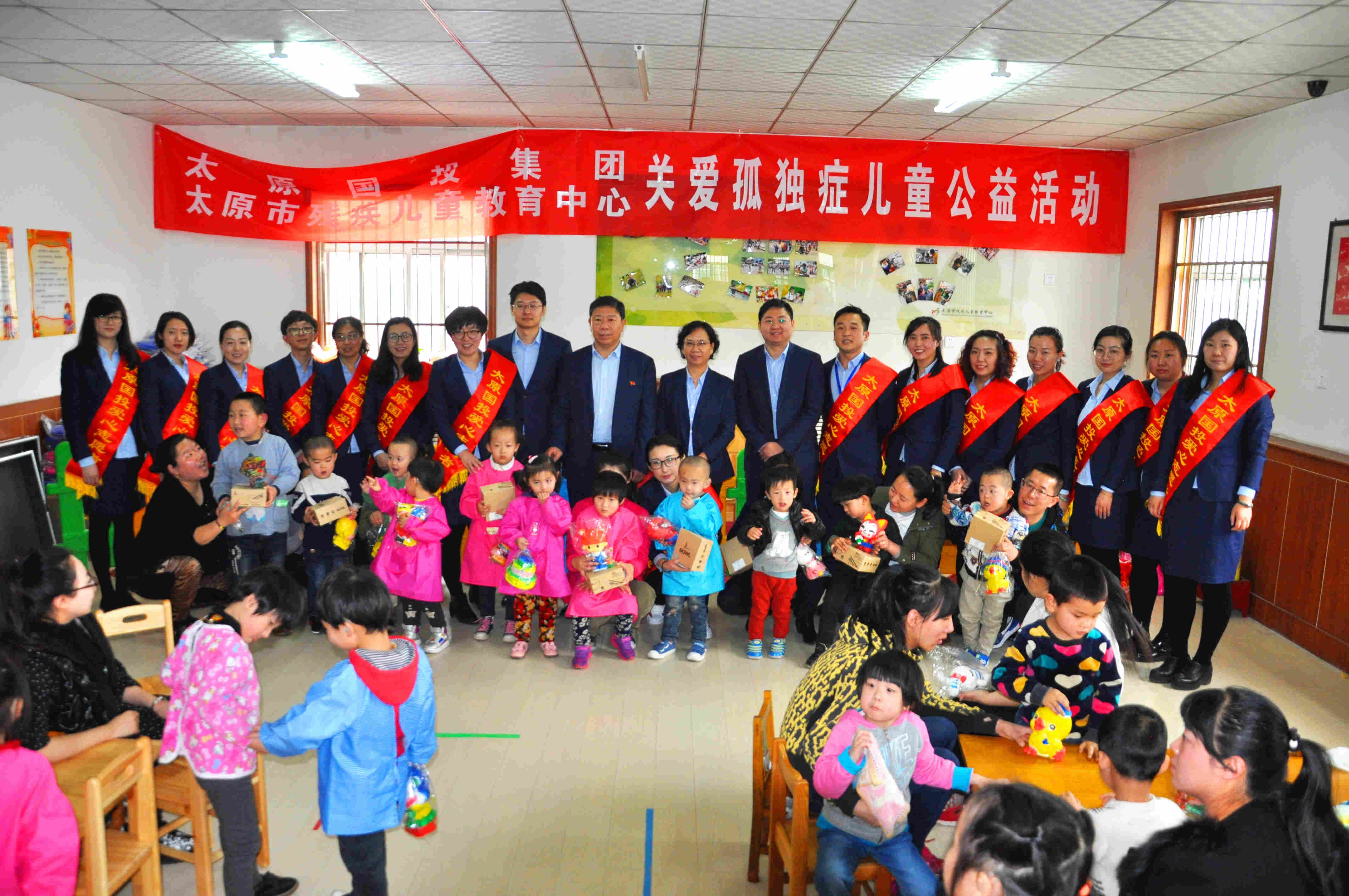 2017年3月30日上午,在第十個“世界自閉癥日”來臨前夕,太原國有投資集團有限公司的愛心志愿者們來到太原市殘疾兒童教育中心,與中心共同開展“關愛孤獨癥兒童公益活動”,為這里的兒童們送來平板電腦、書包、油畫棒和繪本等價值2.5萬元的玩教具。